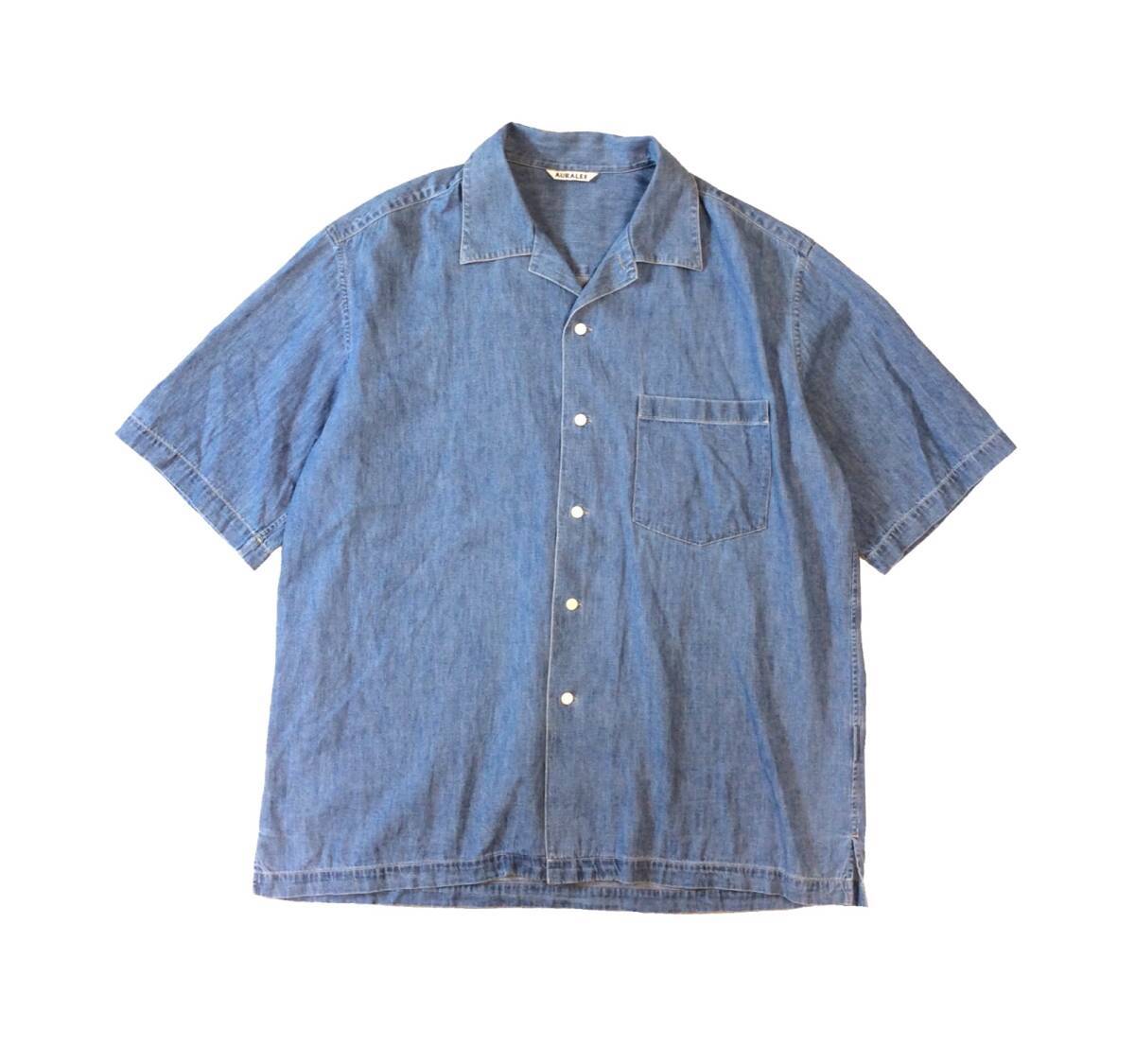 - AURALEE オーラリー 24SS セルビッチ スーパーライト デニム 半袖 シャツ オープンカラーシャツ ライトブルー系 メンズ 4 A24SS02GS