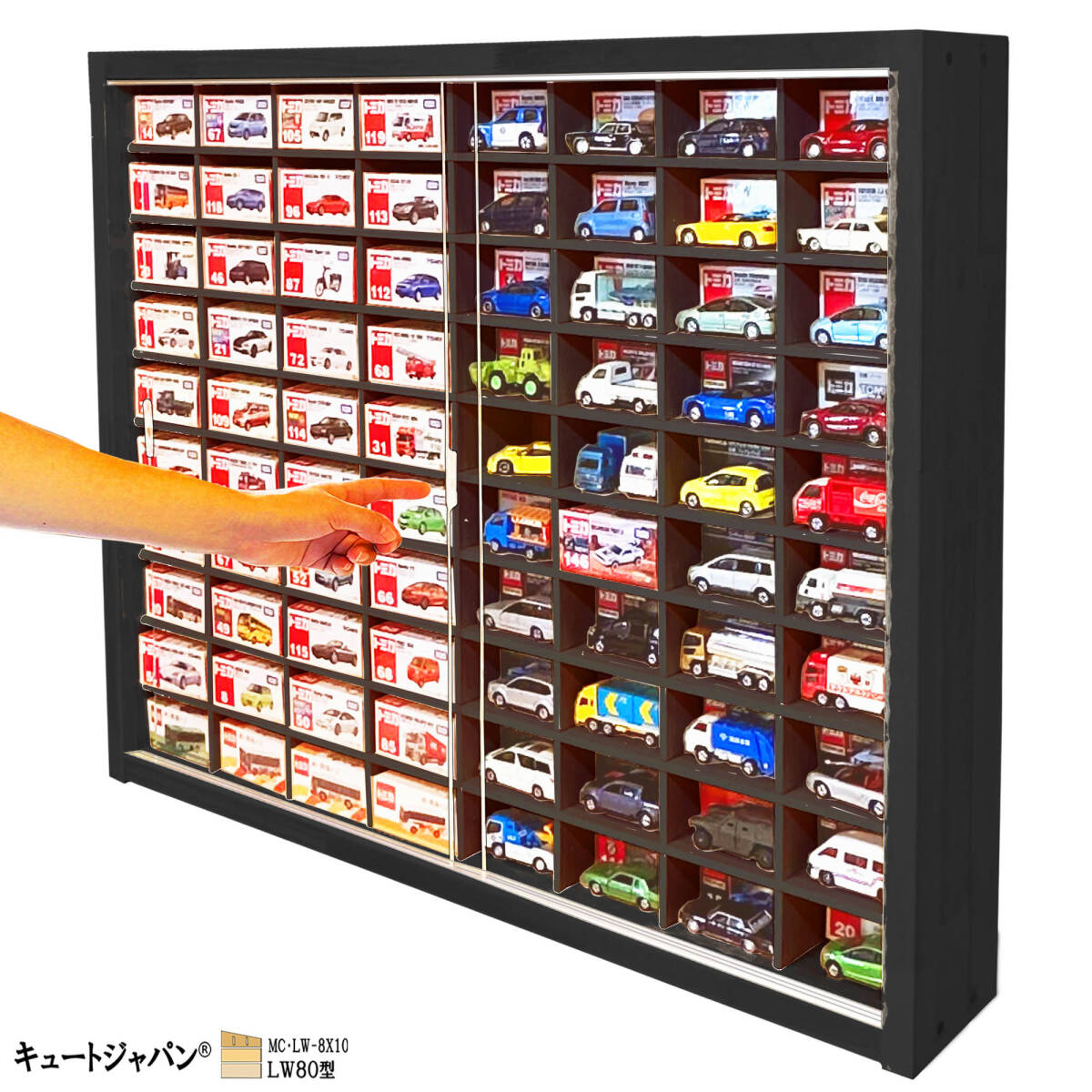 > 送料無料★ブラック色全塗装 木製ミニカーケース 160台収納 アクリル障子付 80マス 日本製 トミカ 京商 ホットウィール コレクション