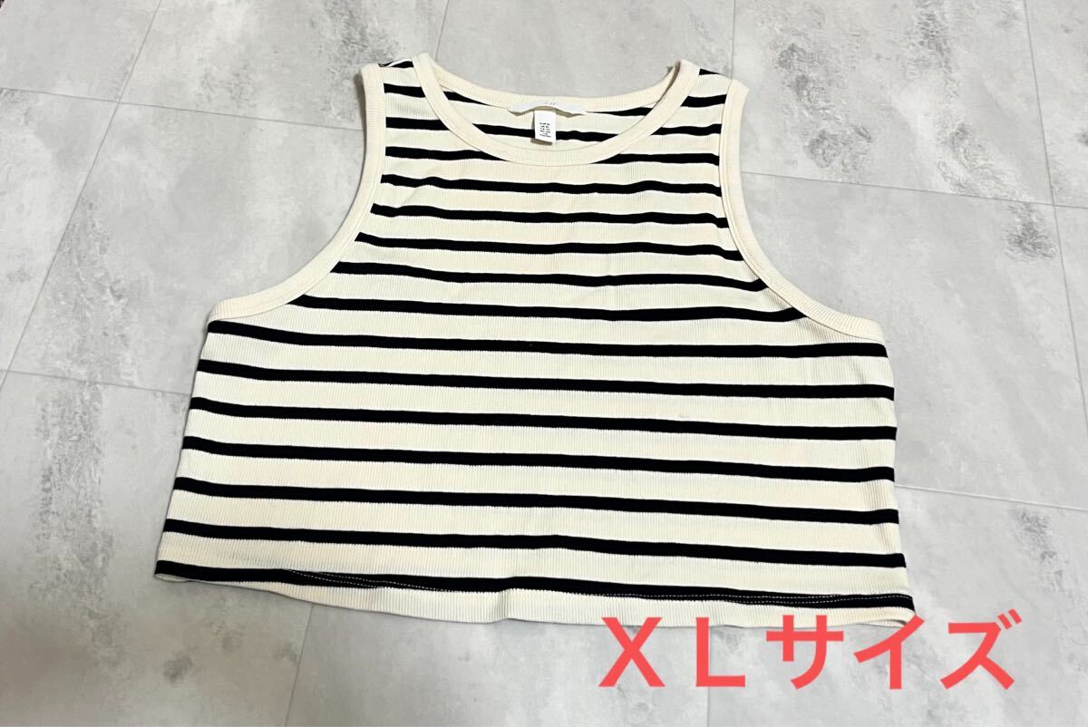 - 美品!H&M ボーダー柄タンクトップ ショート丈 ホワイト×ブラック XLサイズ