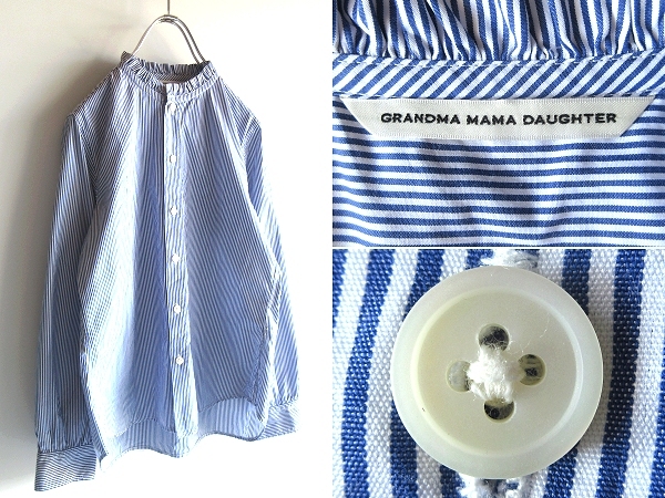 - ネコポス対応 GRANDMA MAMA DAUGHTER グランマママドーター 2020 フリル襟 スタンドカラー ストライプシャツ ブラウス 0 ブルー ホワイト