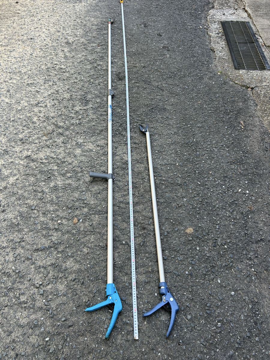 - 中古/ ①軽量収縮高枝切り鋏 カマキ かるのびNO.1833(1.8m~3.0m 6段階調節可能) ②長さ1.2m メーカー不明 長柄鋏の2本セット☆管理820-29