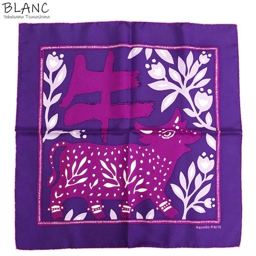 > エルメス カレ45 プチカレ スカーフ ガヴロッシュ 今年の干支 牛 シルク パープル HERMES 横浜BLANC