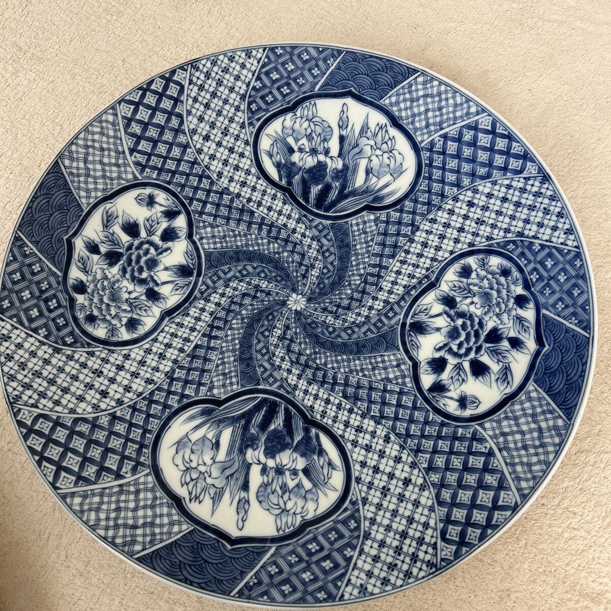 - 肥前・ 哲三郎窯 色絵 飾り皿 大皿 染付