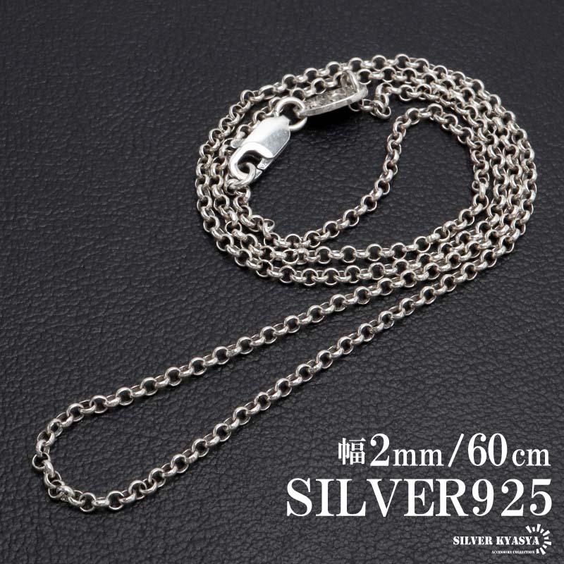- シルバー925 ロールチェーン ネックレス 幅2mm 60cm ネックレスチェーン 細身 メンズ 男性 金属アレルギー対応