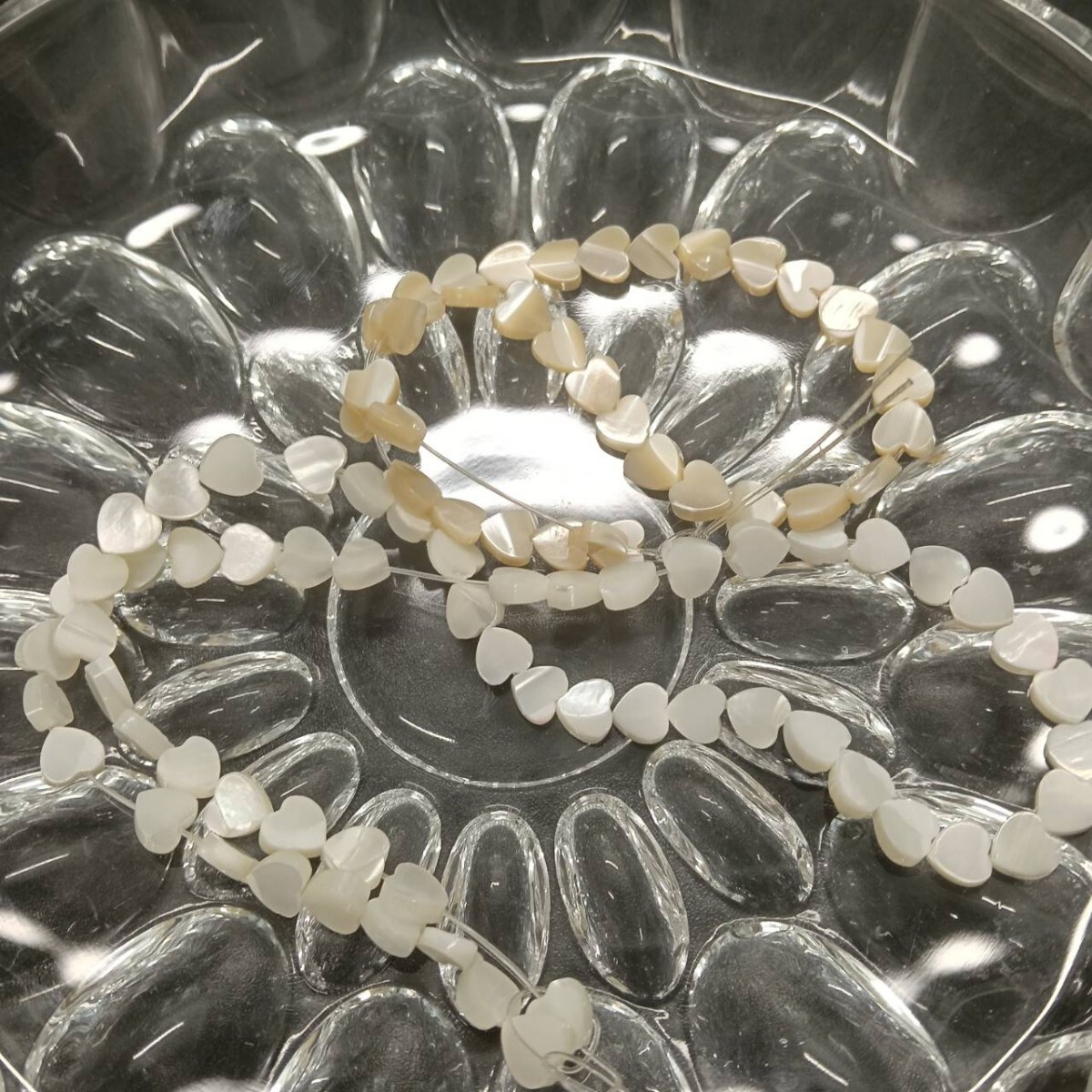 > ☆未使用 大量 天然石 シェル風 ビーズ 16g 6×7m ハート ホワイト 白 大粒 ヴィンテージ パーツ アクセサリー ネックレス B-307