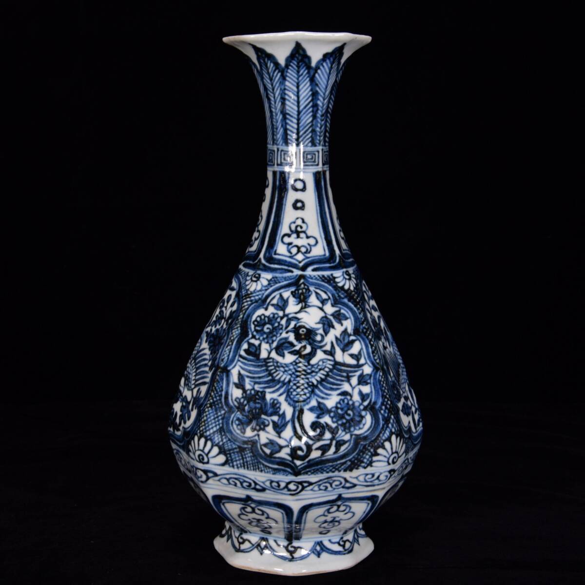- 『館蔵珍品 元 古陶瓷品 青花 鳳紋 六方玉壺春瓶』置物 賞物 貴重物品 収蔵品 中国古美術