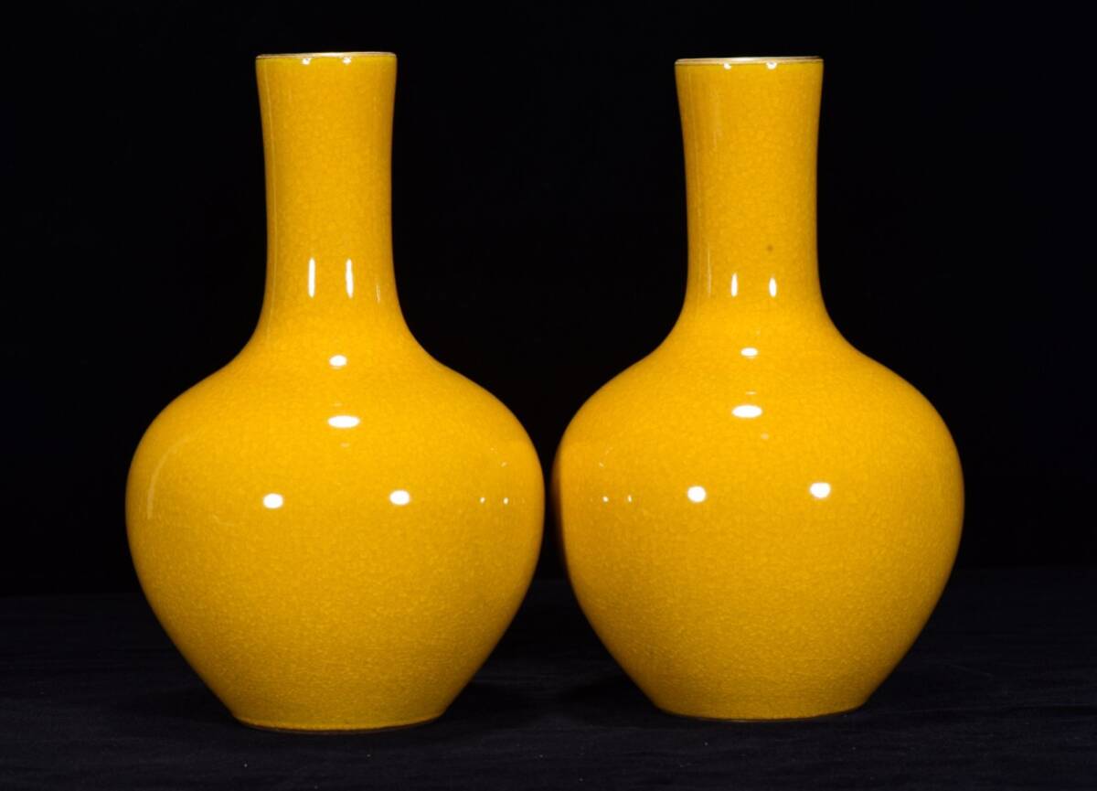 - 『館蔵珍品 清 乾隆年製款 古陶瓷品 冰裂紋 天球瓶一對』置物 賞物 貴重物品 収蔵品 中国古美術