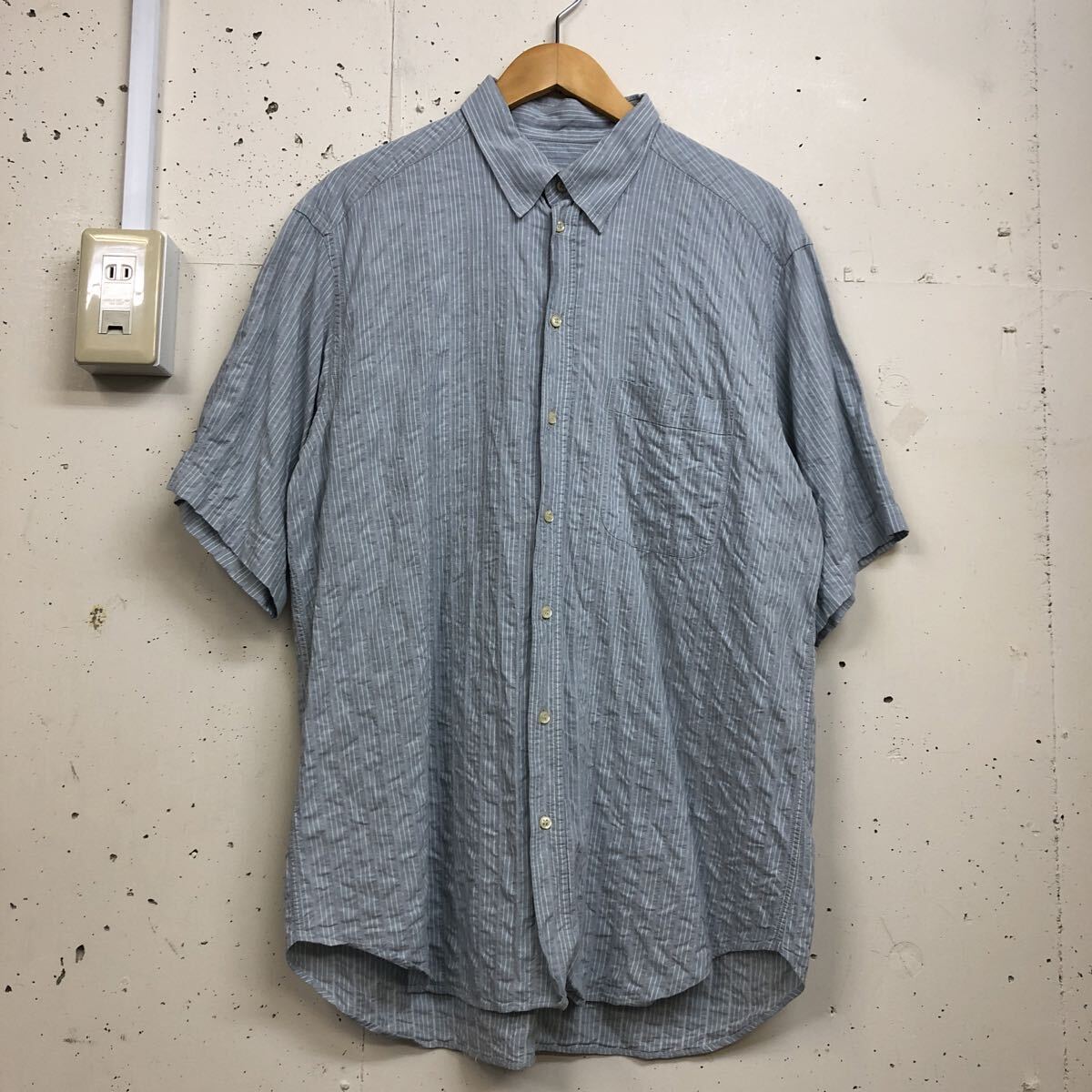 > GIORGIO ARMANI ジョルジオアルマーニ LE COLLEZIONI 半袖シャツ メンズ サイズ42 ブルー 水色 ストライプ