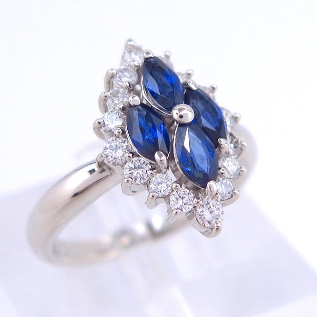 > Pt900 プラチナ リング 指輪 サファイア1.100ct ダイヤモンド0.500ct 12号 シンプル プレゼント 【中古・新品仕上げ】/30971/10015866