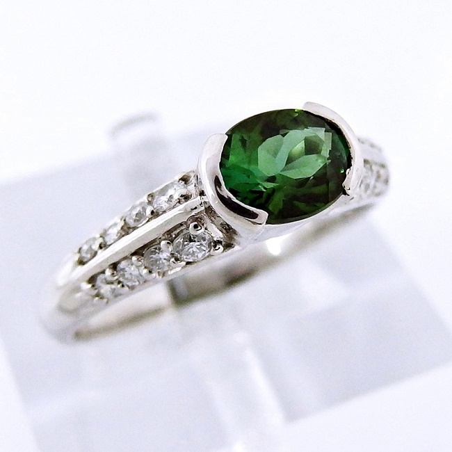- Pt900★リング グリーントルマリン0.79ct ◇ダイヤモンド0.25ct ◆ソーティング付【中古】/s22041/10004820