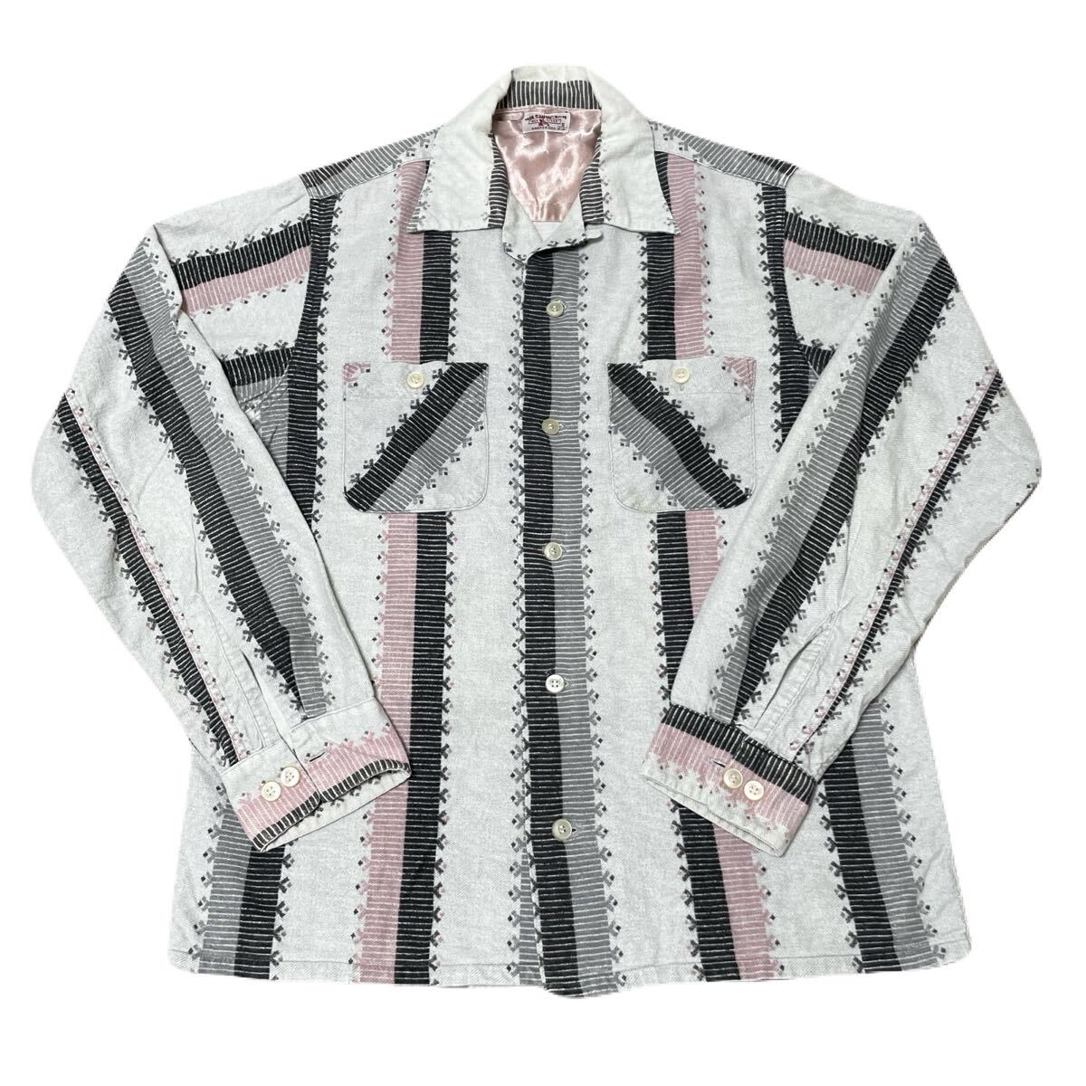 > 50s 60s USA製 シャツ プリネル プリントネル ネルシャツ 開襟 オープンカラー 長袖 チェック オンブレ シャドー ヴィンテージ ビンテージ