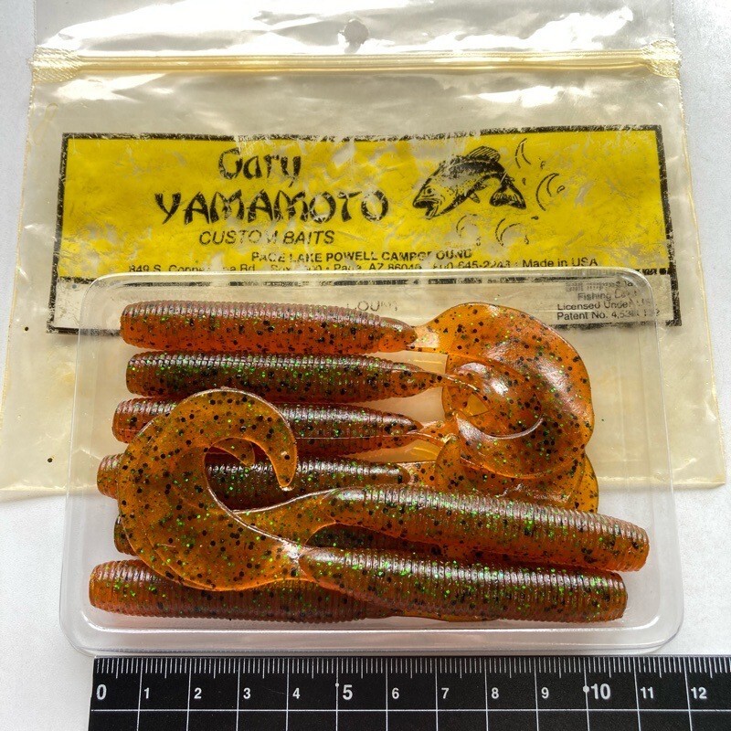 > 814412 ゲーリーヤマモト 6インチ ジャンボグラブ 8本 シングルテール GARY YAMAMOTO JUMBO GRUB #196 パンプキン/グリーン&ブラックFLK