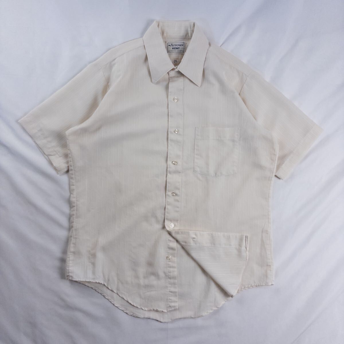 - US Vintage 70-80s ARROW KENT 光沢 刺繍 シャドーストライプ 縦ライン レトロ 単色 アイボリー ドレス 総柄シャツ ポリシャツ