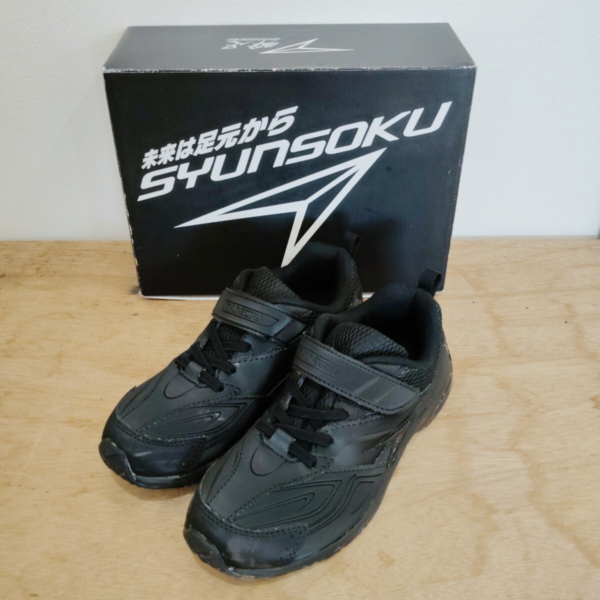 - 瞬足 キッズ スニーカー 22.0cm ブラック 黒 マジックテープ 靴