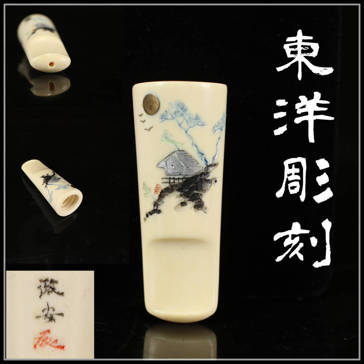 - 久1061 東洋彫刻 煙管 パイプ キセル 幅5.6×2cm重さ 13g/未使用同類美品!