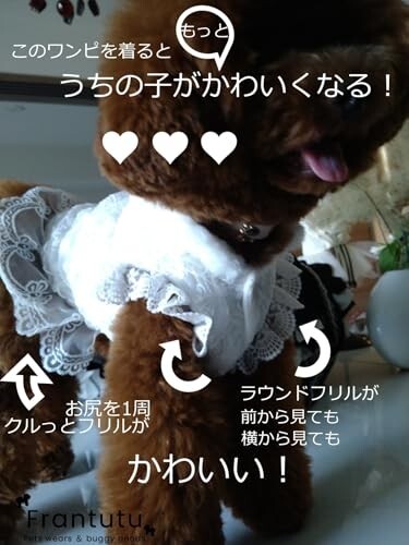 > [lady glamour] レース×フリル ペットワンピ 透け感/ボア襟 小型犬〜中型犬 犬猫用 (ホワイト/M)