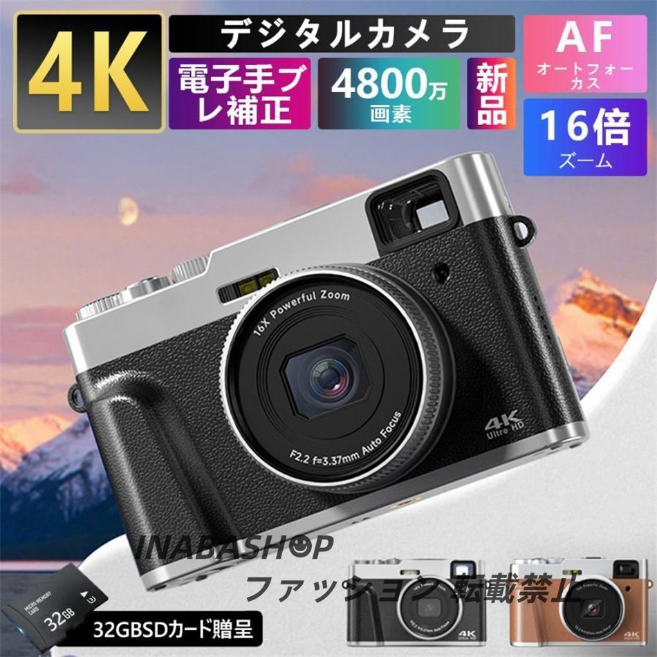 - デジタルカメラ 4K 4800万画素 手振れ補正 光学ファインダー フラッシュ HDMI出力可能 2.8インチ コンパクト カメラ デジカメ レトロ