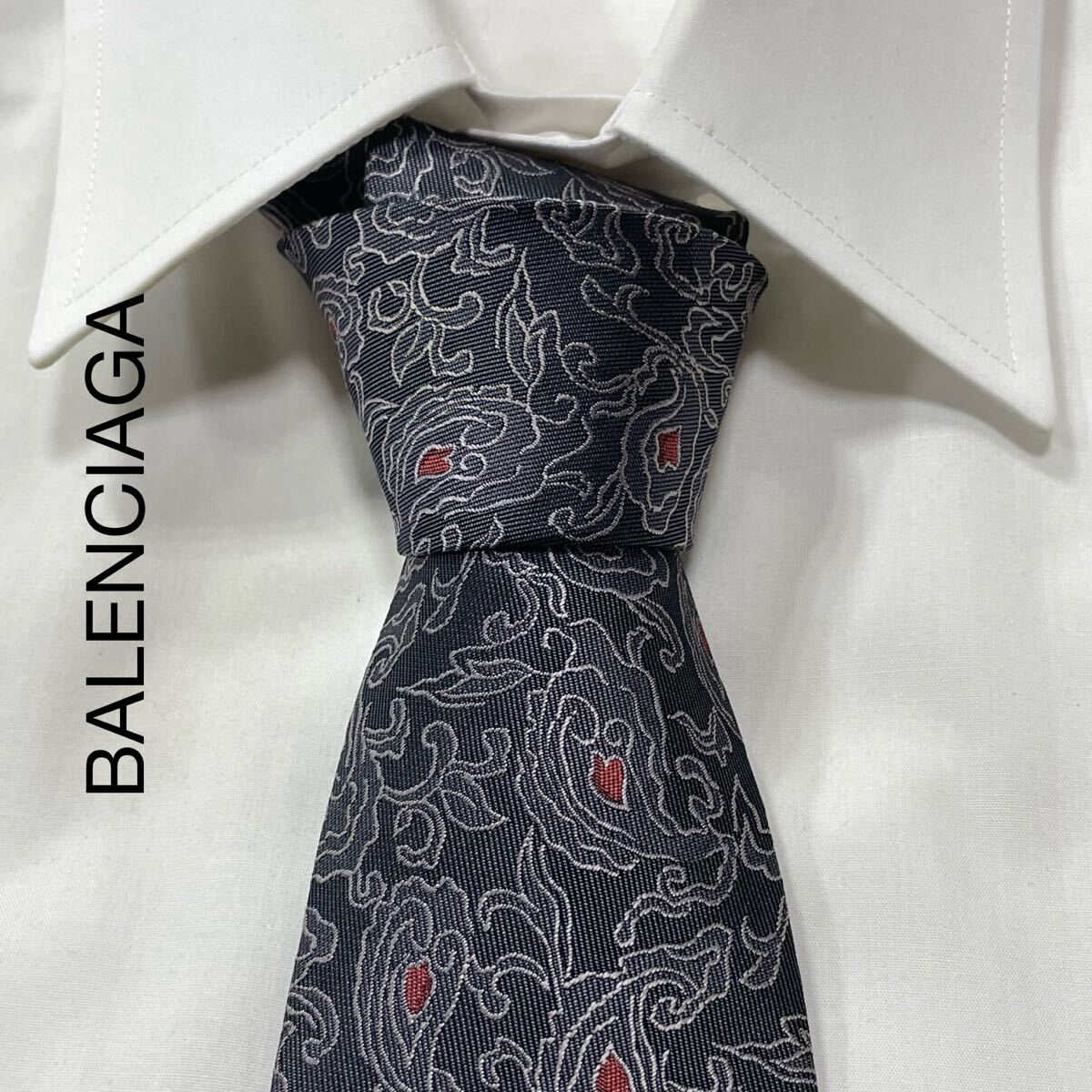 - BALENCIAGA バレンシアガ パターン柄 ジャガード シルク ネクタイ グレー TG2792