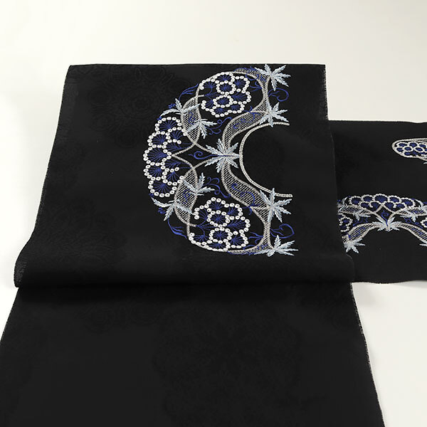 > 和遊館 即決ona4491 西陣 大光 地紋 刺繍 九寸 名古屋帯 オールシーズン 黒色 お仕立て付き