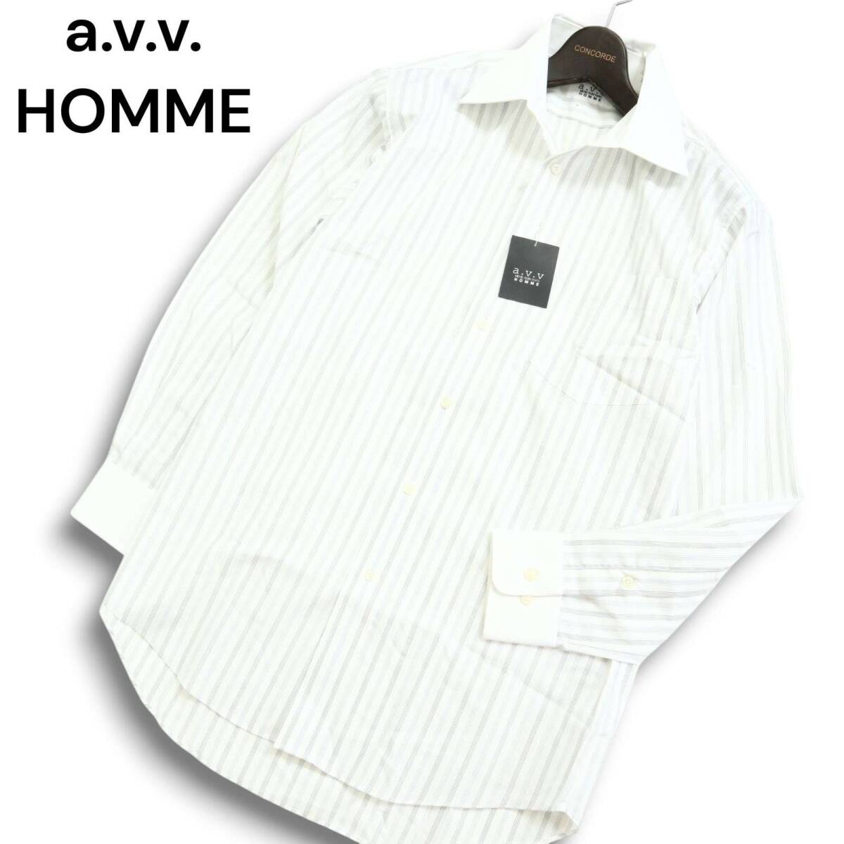 - 未使用★ a.v.v. HOMME アーヴェヴェオム 通年 長袖 ストライプ クレリック シャツ ワイシャツ Sz.M-82 メンズ ビジカジ