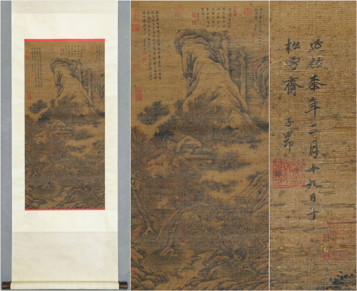 - 古美術 掛け軸 中国・元時代 「趙孟フ書」 絹本 【秋峰隠居図】 立軸 書道 巻き物 肉筆保証 唐物 古画 画心99x48cm LT-250876