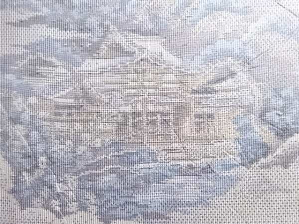 > ys7490144; 宗sou 寺院風景模様織り出し本場大島紬単衣着物【アンティーク】【着】