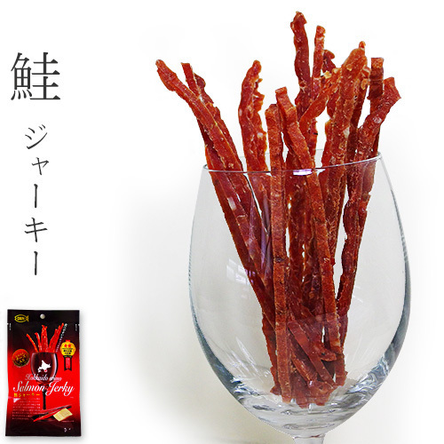 - 鮭ジャーキー35g 北海道産サケ使用 農林水産大臣賞受賞(スティック状の珍味)本醸造魚醤油 さけトバ【メール便対応】