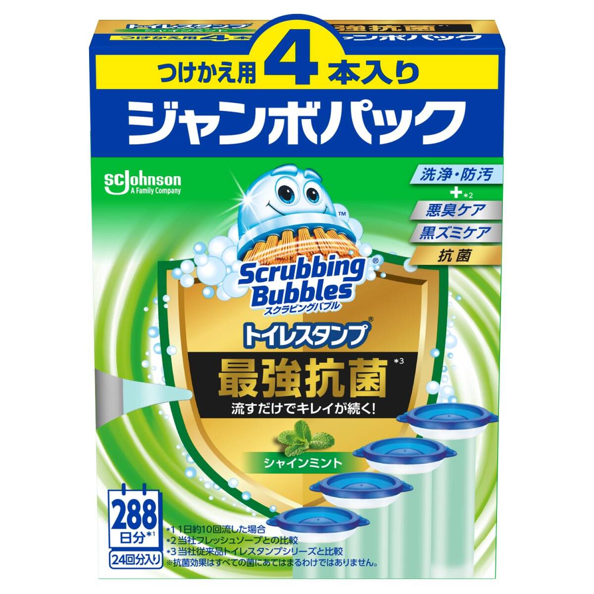 - スクラビングバブル トイレスタンプ最強抗菌 シャインミント 替え4P 容量4ホン 住居洗剤・トイレ用