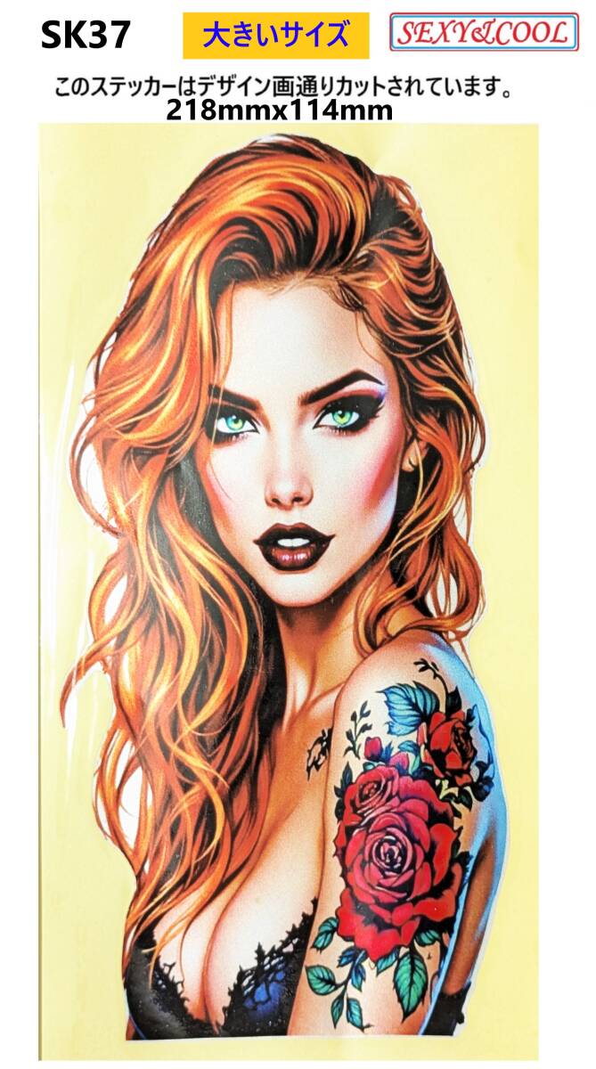 > BIGサイズ SK37-07 特価 キラキラ スレンダー タトゥー クール カッコいい セクシーガールステッカー セクシーステッカー レトロ ギター