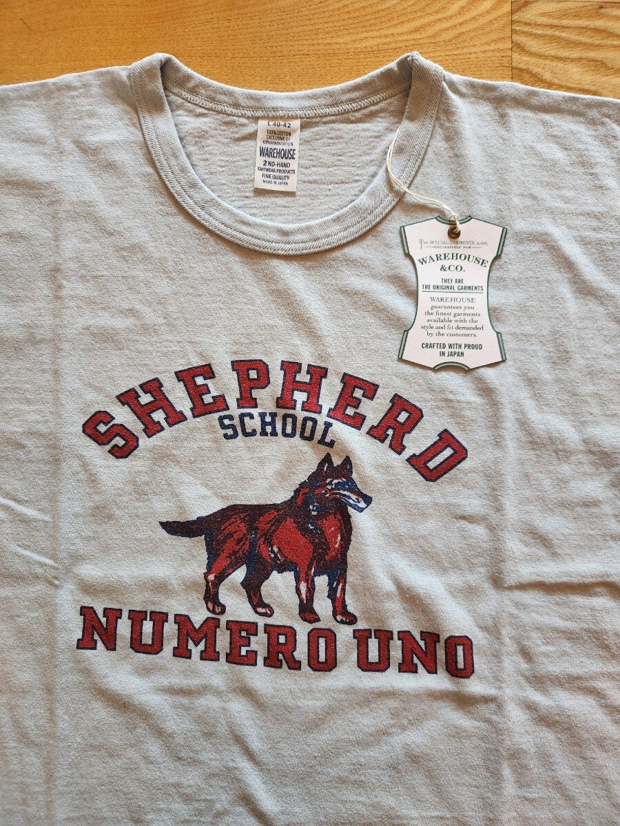 - 新作 即決★WARE HOUSE ウエアハウス 4064 2ND-HAND セコハン カラープリント半袖Tシャツ SHEPHERD オオカミ 日本製 サックス L