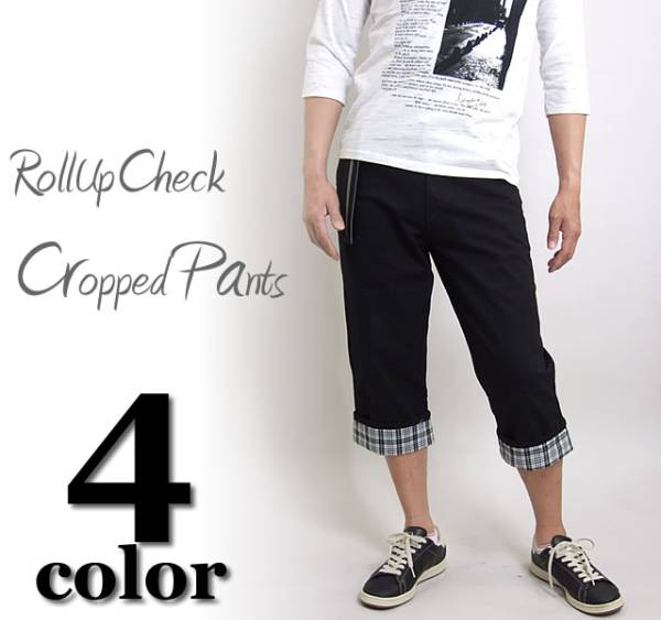 - 送料込み 新品 クロップドパンツ メンズ 七分丈 ロールアップ ハーフパンツ 【L】 ブラック ベージュ チノパン 綿 コットン
