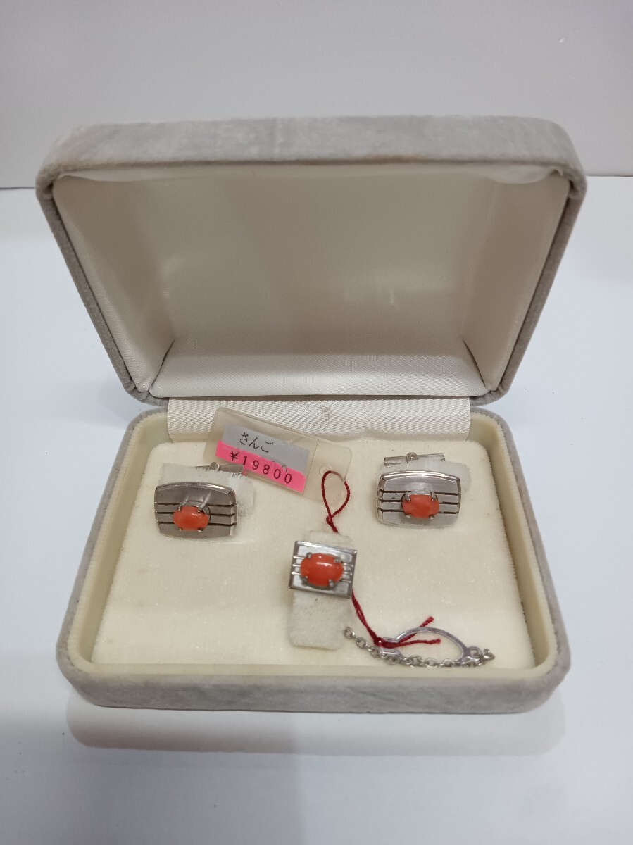 - さんご カフス ネクタイピン セット 珊瑚 メンズ アクセサリー