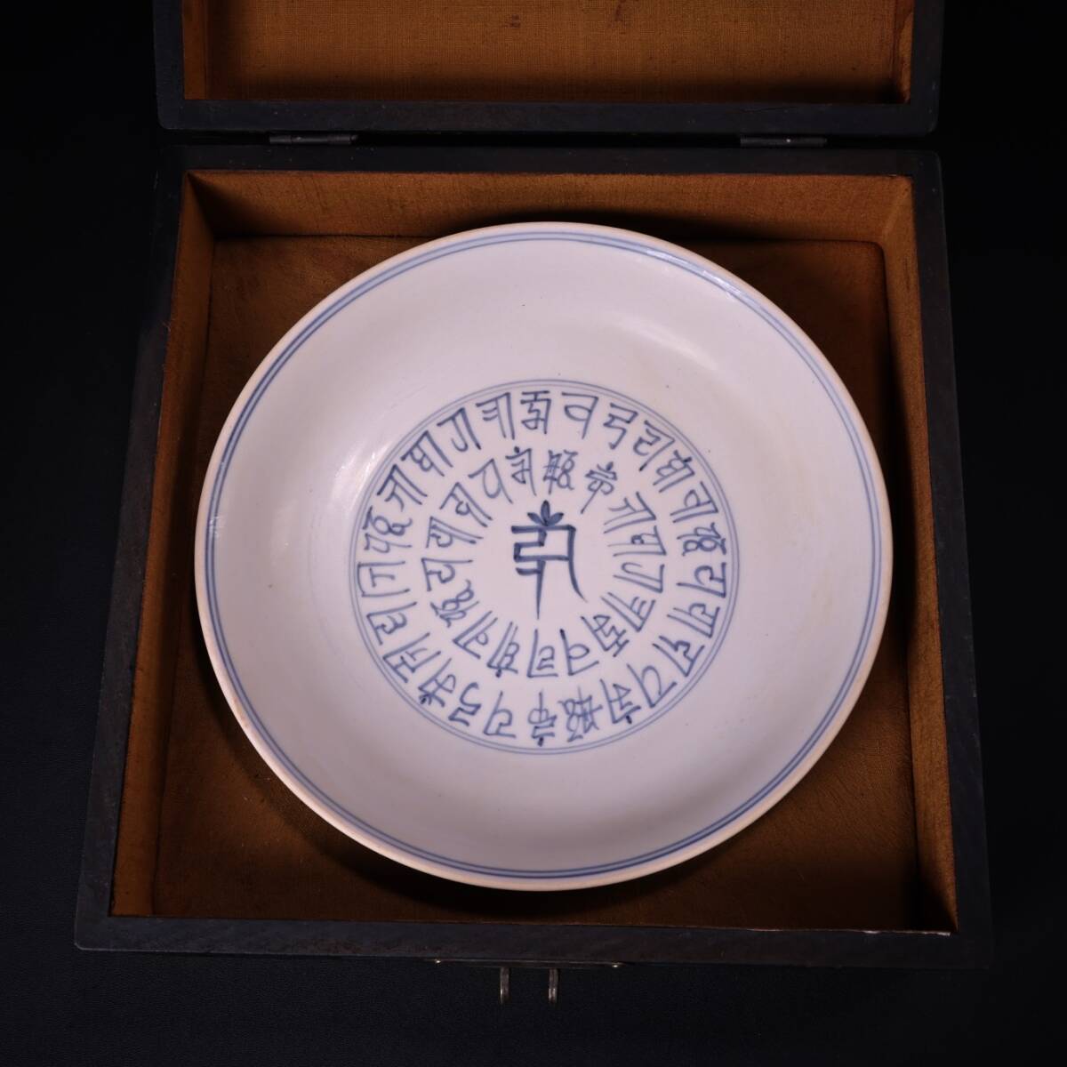 - 清時代 古陶磁器 宮藏 銘文 青花盤 盤子 盤 陶芸文案置物 擺件 時代物 古董品 骨董 旧家蔵出し 唐物 中国古玩 古美術品