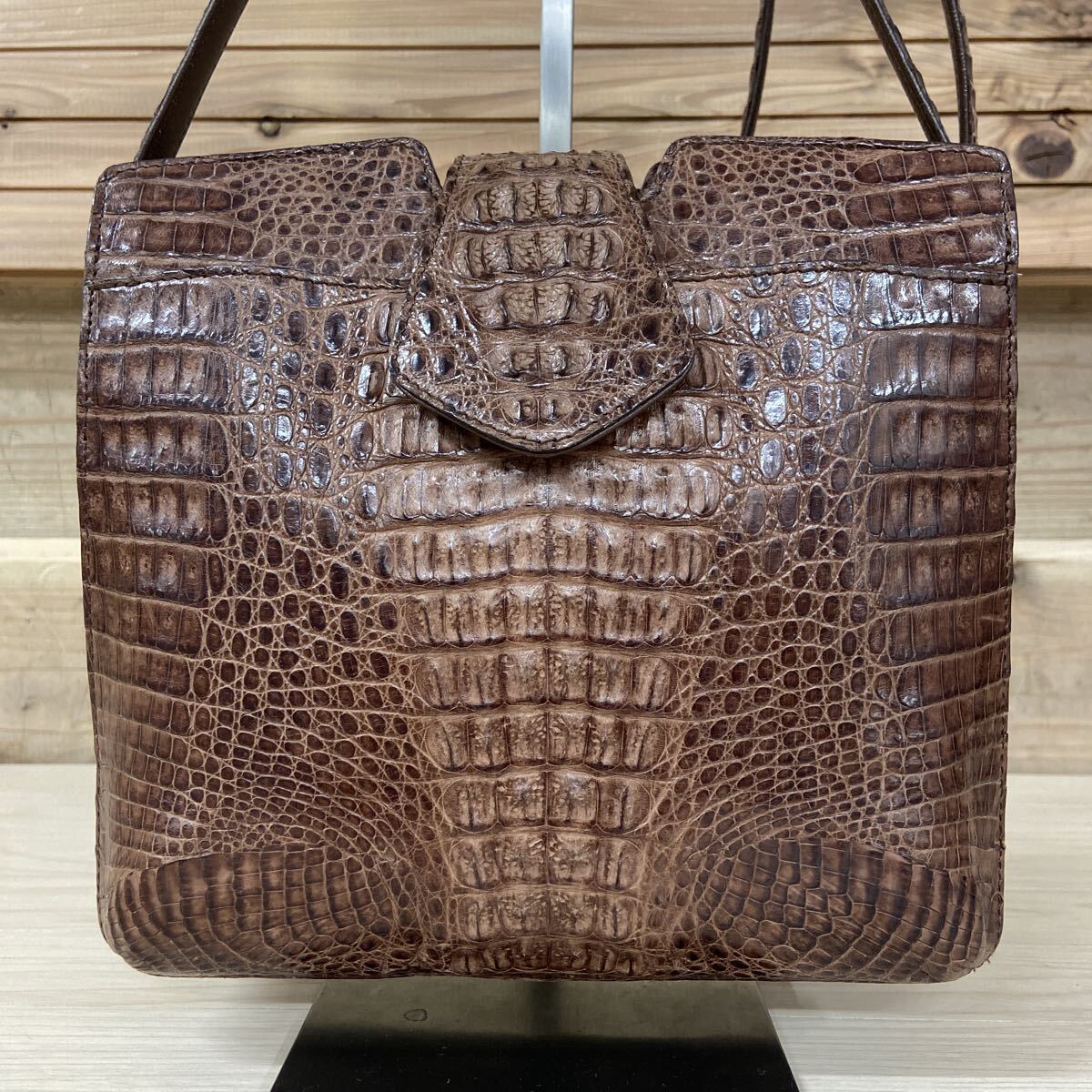 - 13 貴彦 TAKAHIKO カイマンレザー 本ワニ革 ショルダーバッグ 鞄 ブラウン系 クロコダイル エキゾチックレザー