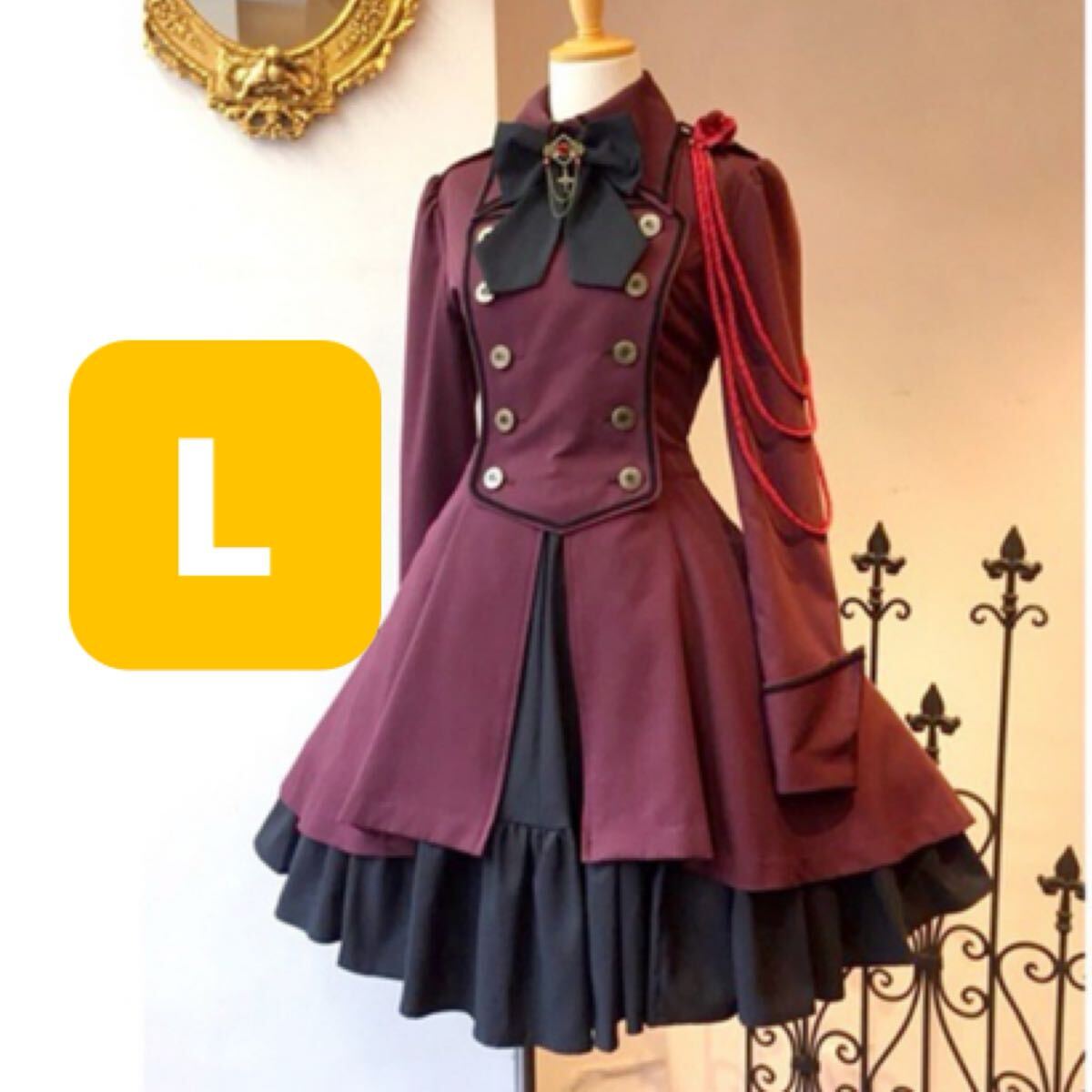 - 膝丈ワンピース 軍服 ロリータ ワンピース ゴスロリ ドレス ロングワンピース スカート フレアスカート コスプレ 大人気 激安 #レッド #L