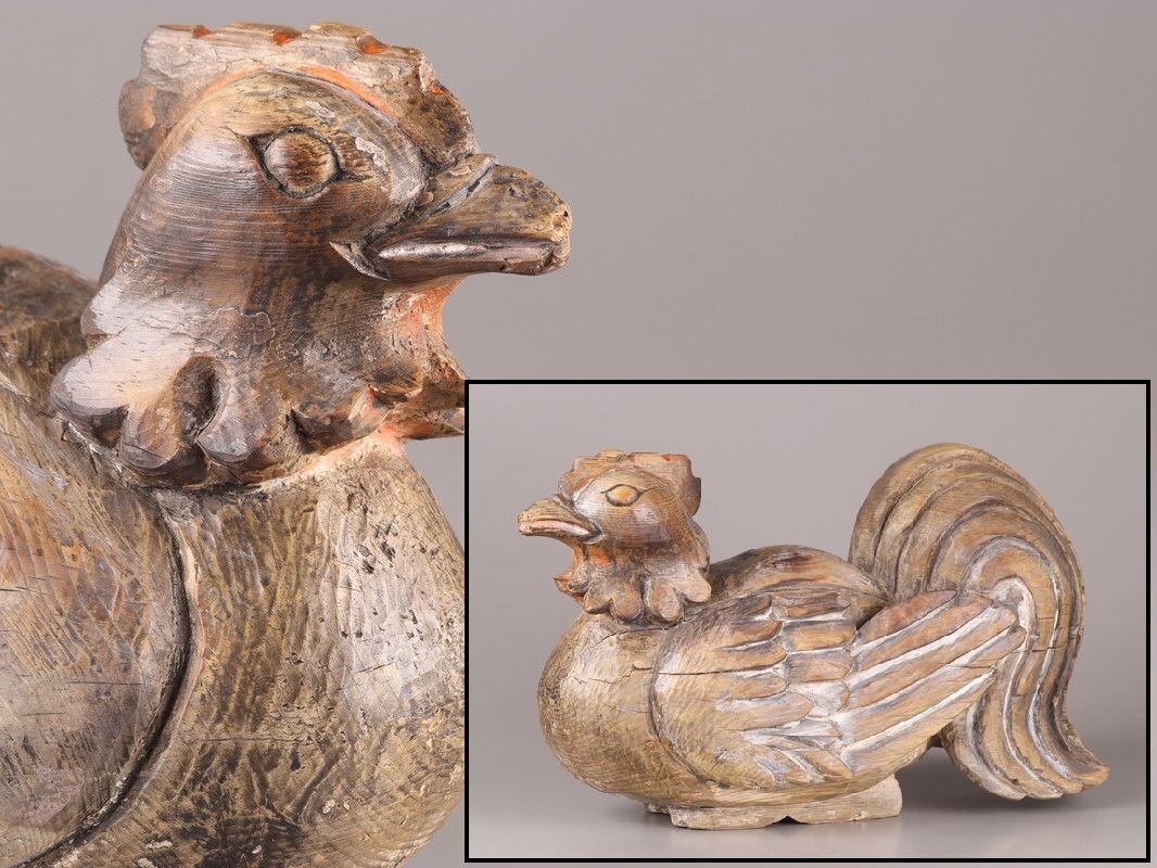 - 古美術 李朝 民芸 時代木彫 鶏 置物 時代物 極上品 初だし品 D4122