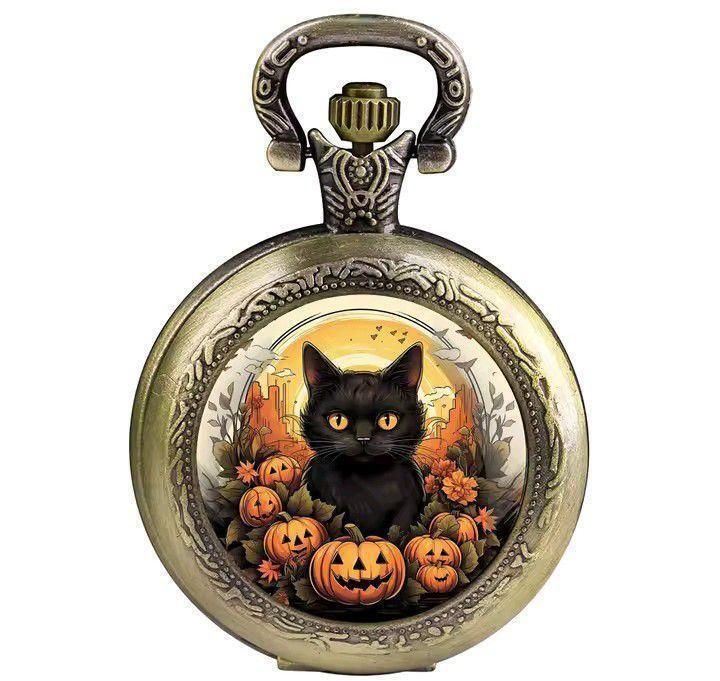 - 黒猫デザイン 懐中時計(ブロンズ)