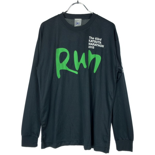 > 古着 メンズL MIZUNO/ミズノ ランニングシャツ 長袖 スポーツウェア ブラック/グリーン/ホワイト Q2JA4008