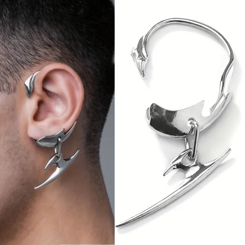 - ユニセックス男女兼用サイバーパンクVバンy2kスタイルイヤークリップカフスダガー形状ピアスホール必要なしクール目立ち度NO1オススメ人気