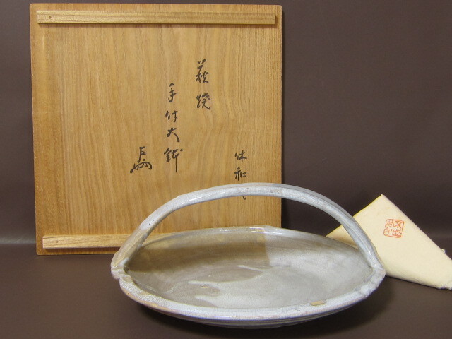 - 期間限定!送料無料!11月末まで!萩焼手付大鉢 人間国宝 三輪休和 作 表千家十三代 即中斎 花押 ☆140
