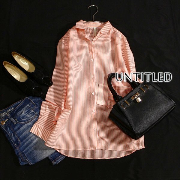 > 美品 UNTITLED アンタイトル 大人可愛い ストライプ柄 コットン シルク 長袖し薄手シャツ 2号 M 春 夏 25A05