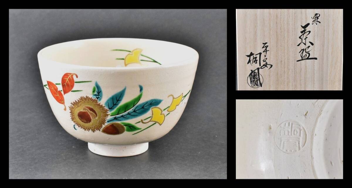 - ▲楠廸庵▲栗茶碗 平安桐鳳作 茶道具