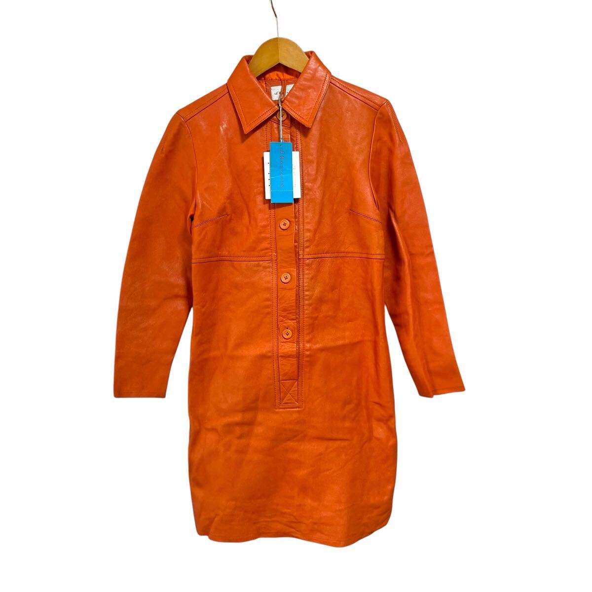 > ※L 【タグ付き未使用】il ROSSETTO レザーシャツワンピース プルオーバー オレンジ ラムレザー 羊革 サイズM