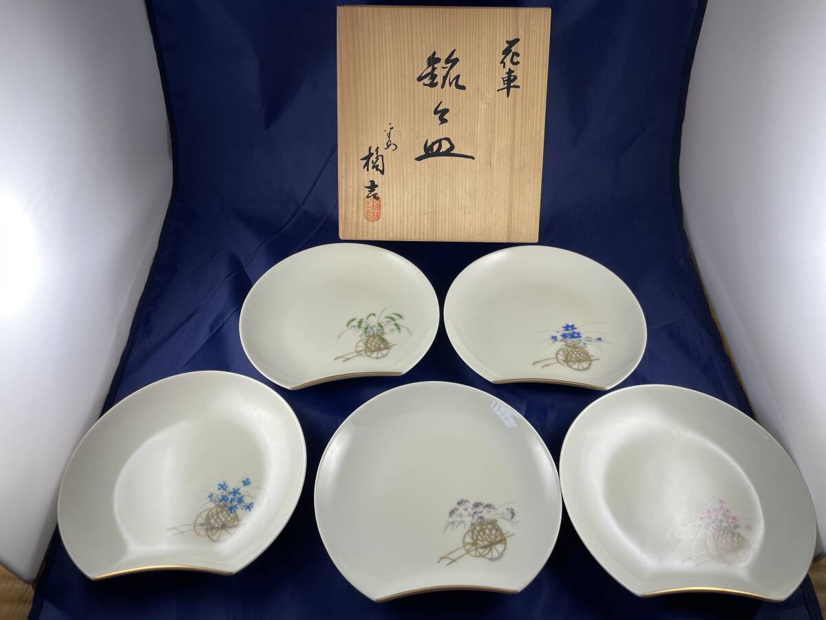 - たち吉 橘吉 銘々皿 花車 5枚セット 共箱あり