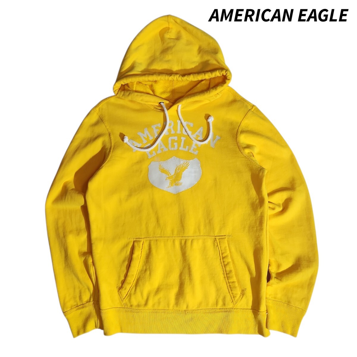 - AMERICAN EAGLE プルオーバー裏起毛パーカー 黄色イエロー 表記サイズXS カレッジ風プリント 84806