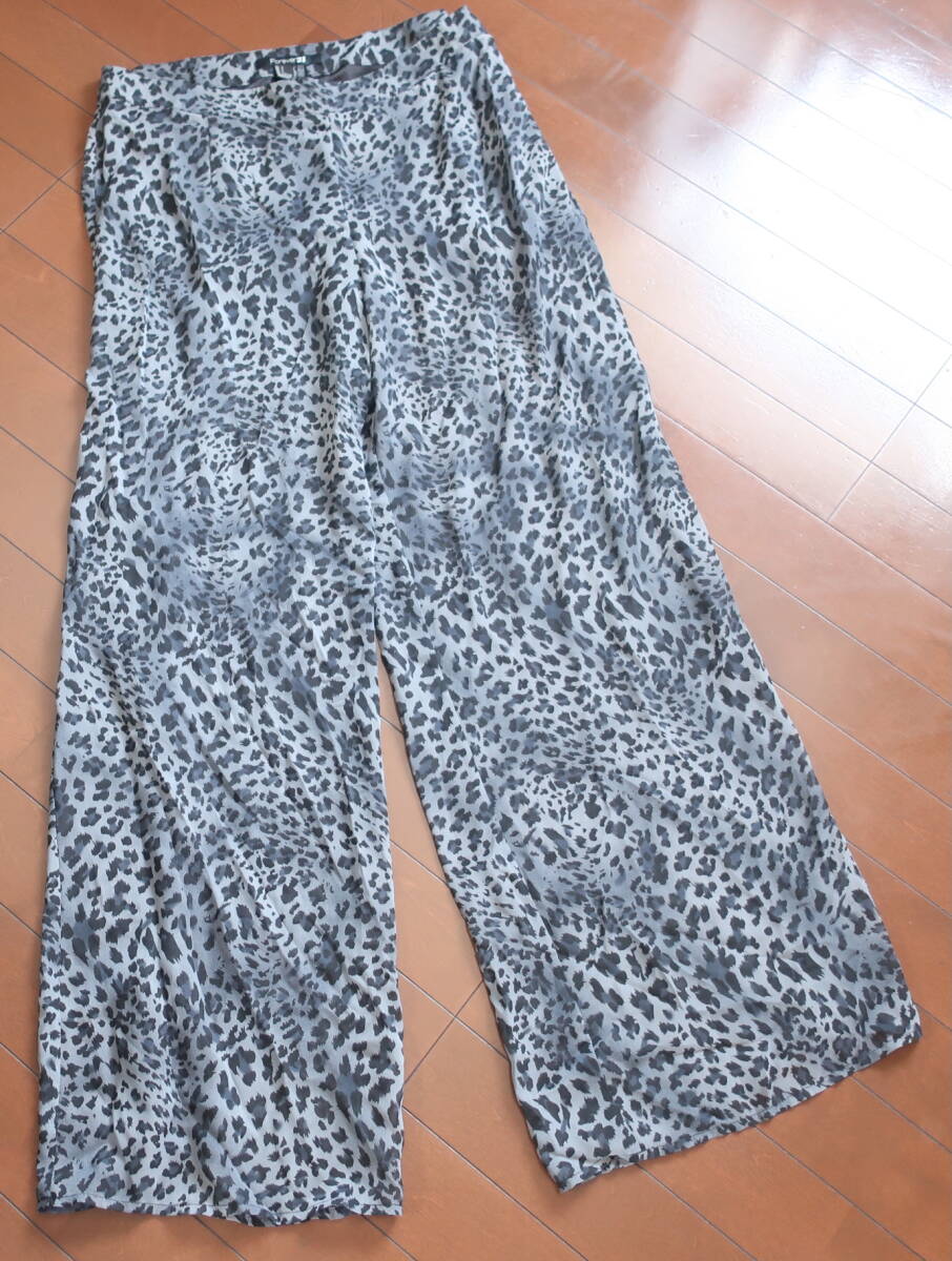 - Forever21★グレー豹 ヒョウ柄シースルーワイドパンツ【L】レディース・未使用