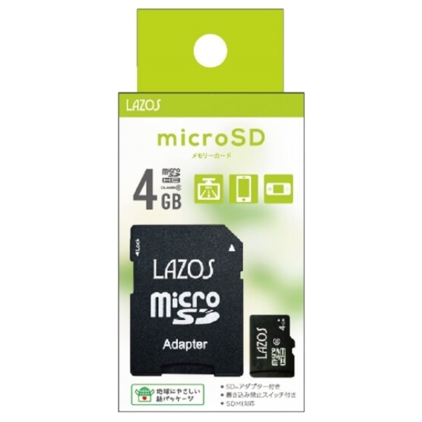 - microSDカード 4GB 格安・アダプタ付 L-B4MSD6 LAZOS microSDHC マイクロSD