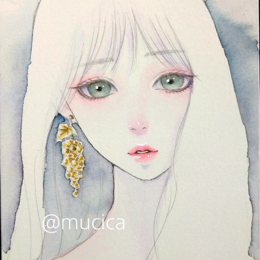 - 肉筆原画〈ぶどうピアス〉手描きイラスト 水彩画 美人画 絵画 オリジナル B6