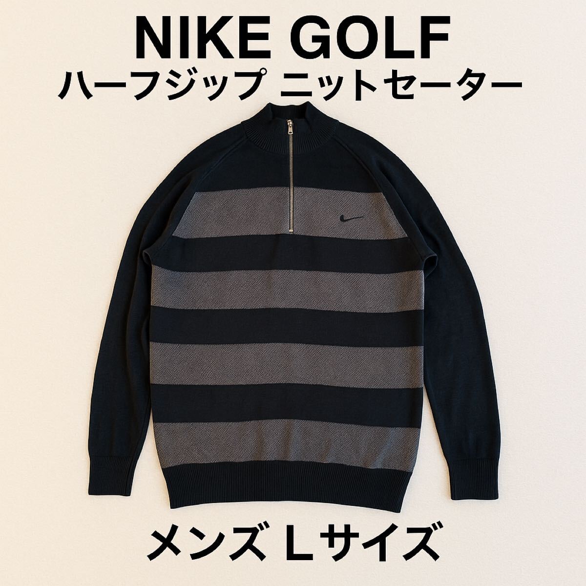 - NIKE GOLF ナイキゴルフ メンズ ハーフジップ ニットセーター Lサイズ ブラック×グレー