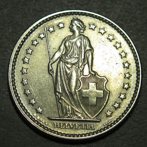 - スイス 1969年 昭和44年 2フラン硬貨 ヘルヴェティア g5580